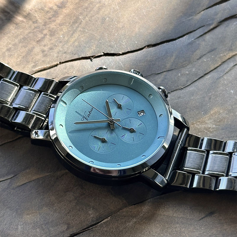 Blue dial with gun-colored stainless steel strapГарантия :
