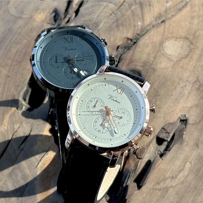 Многофункциональные деловые часы Virtue с календарем, ремешком из нержавеющей стали и кожи, корпусом из сплава, водонепроницаемостью 3ATM, кварцевым механизмом.